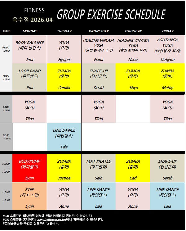GX Schedule