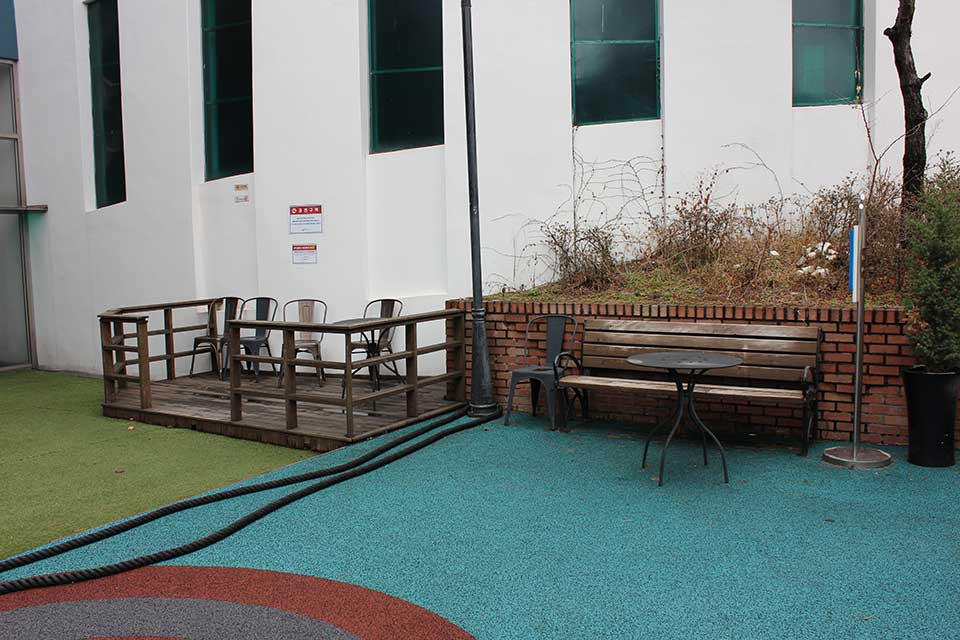 - 야외에서도 운동이 가능한 시설과 트랙이 설치되어 있습니다.